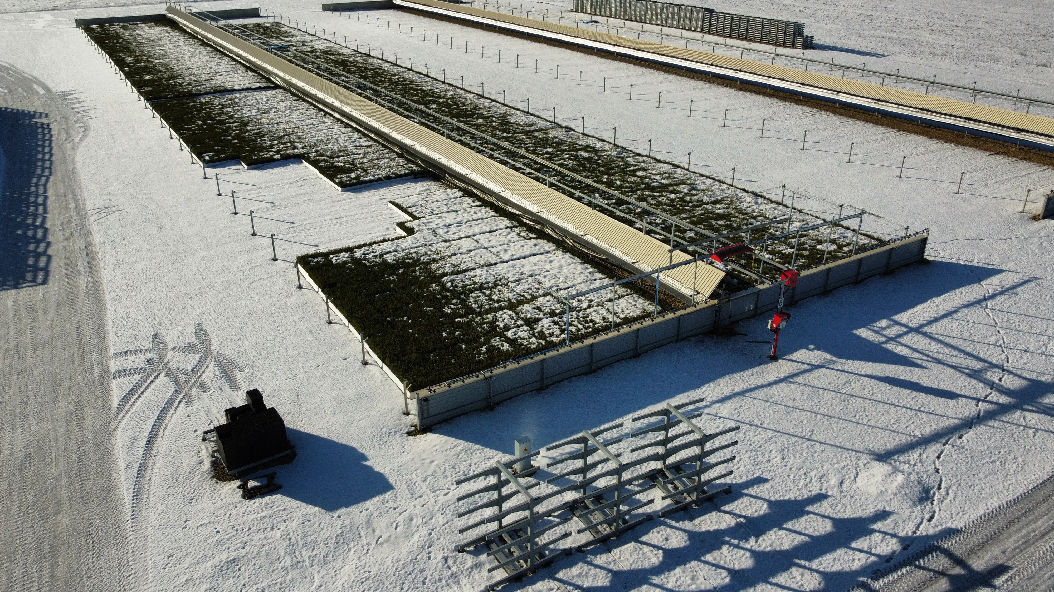 Produktion, leverans och installation av två bevattningssystem med lång nattskuggning på Mezvidi plantskola.